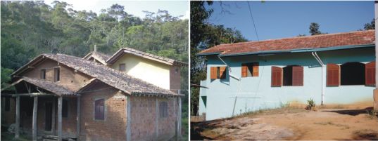 | À esquerda, abrigo na montanha e à direita prédio da recepção aos visitantes |