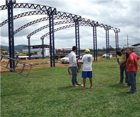 Na semana passada, quando foram instalados os arcos em estrutura metálica que dará suporte para a cobertura, o Secretário Municipal de Desenvolvimento, Indústria e Comércio, Renato Filgueiras, visitou a obra para ver como está o andamento. Renato aproveitou para conversar com os responsáveis pelas empresas que estão executando a obra e também com pessoas da comunidade que se declararam muito felizes em ver que a Prefeitura Municipal está conseguindo realizar muito um sonho.
