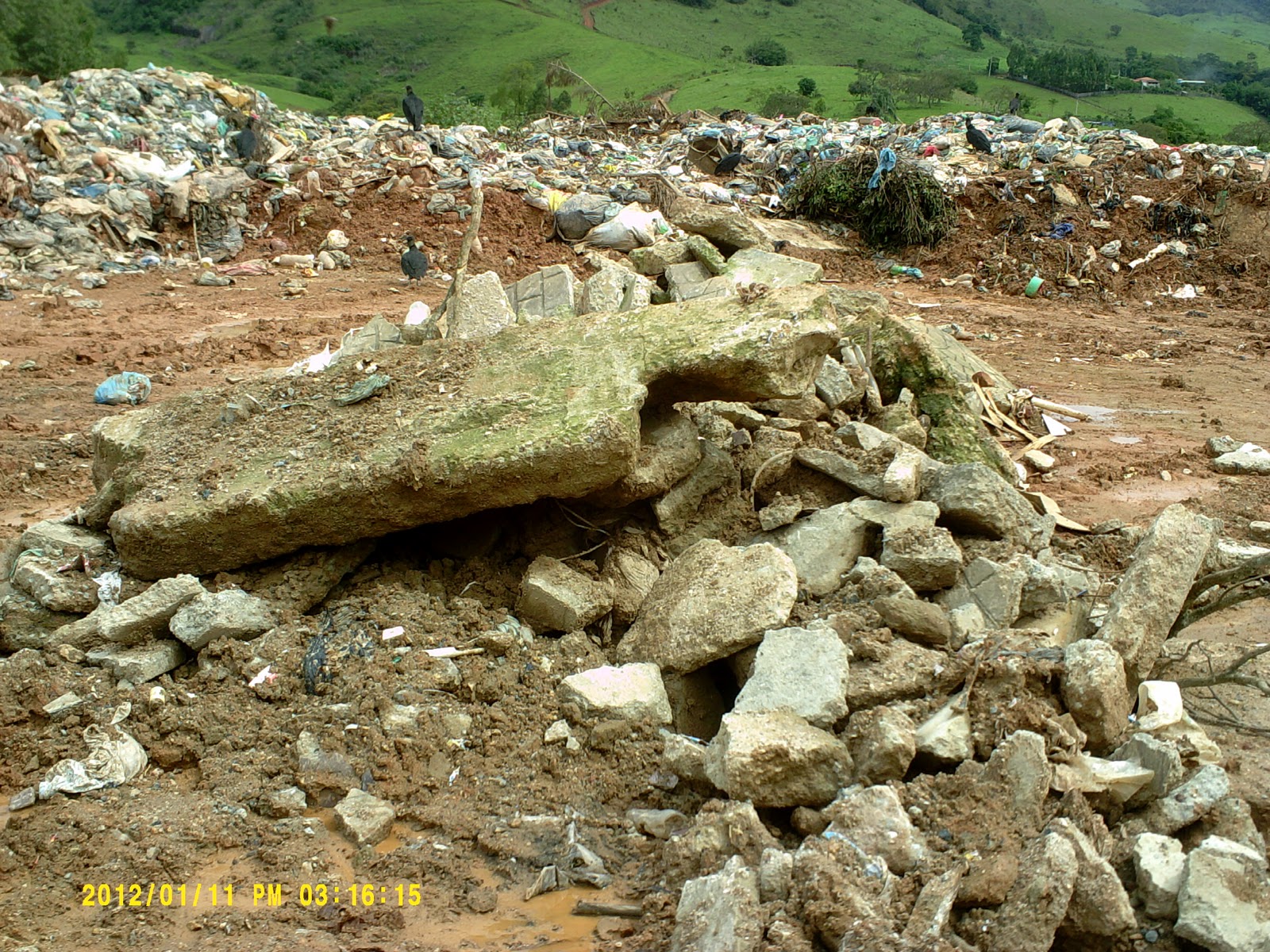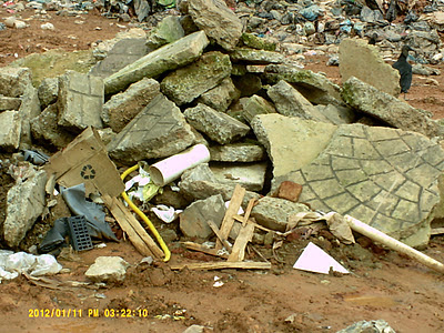 | Partes do maciço e resistente piso que existia no antigo calçadão,arrancadas pelas máquinas e lançadas no depósito de lixo da cidade |