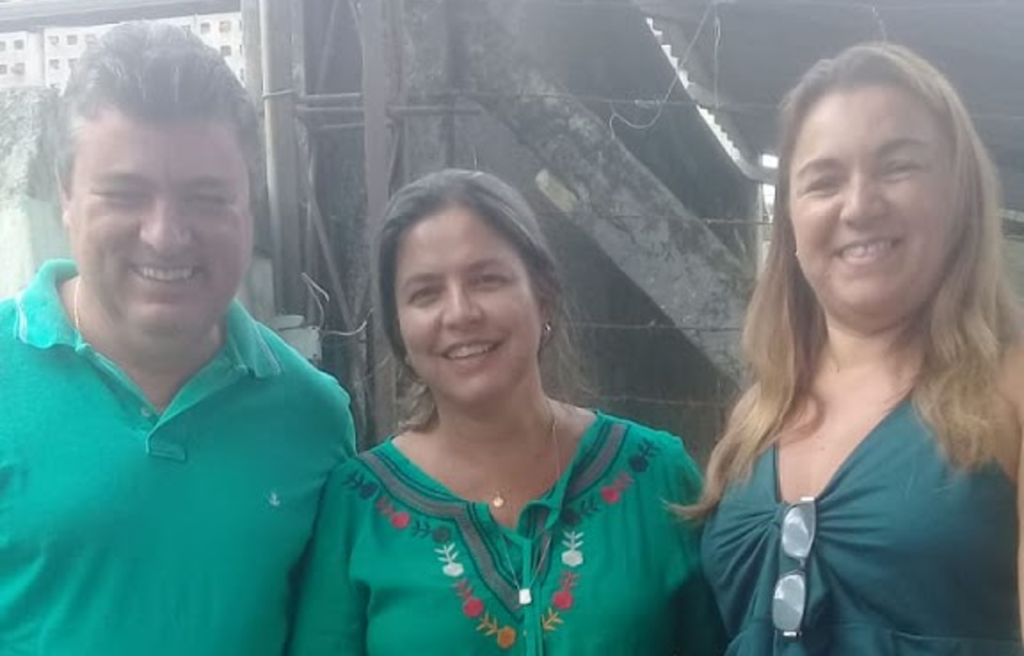 | PREFEITO ERNANDES JOSÉ DA SILVA, DIRETORA ÁGUEDA CRISTINA DE MENDONÇA (CENTRO) E PROFESSORA CÁSSIA (FOTO: ALINE SILVA) |