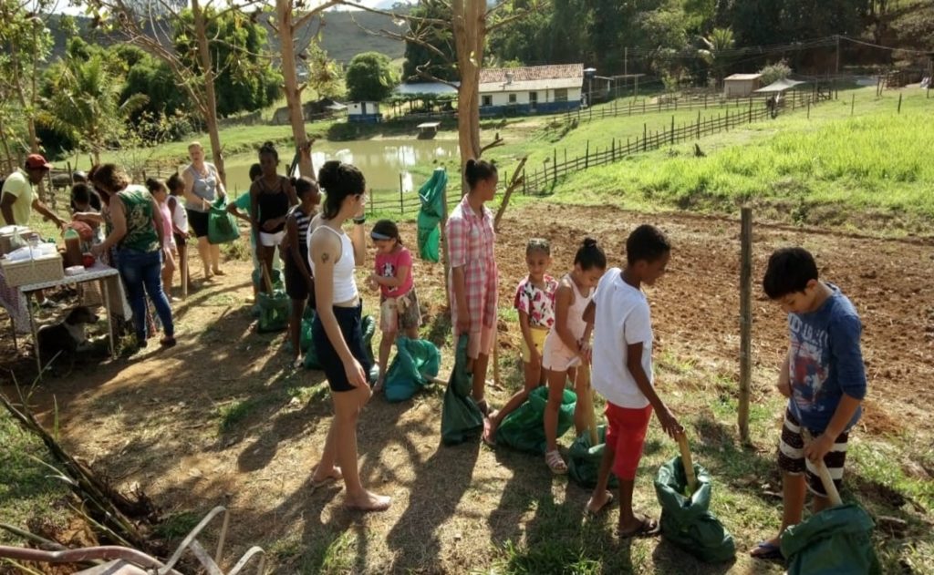 Na última quinta-feira (03/10) um grupo de crianças participantes do Projeto Semente, coordenado por Paula Itaborahy, estiveram presentes no sítio “Recanto Chaves”, de propriedade da nossa amiga Luciana Chaves com a finalidade de plantar mudas de bananeira na AGROFLORESTA que está sendo implantada naquela propriedade rural. Essas crianças são participantes do Projeto Semente, que realiza um importante trabalho de encaminhamento para a vida econômica, social e ecologicamente adequada, oferecendo atividades como artesanato e aprendizado sobre agricultura sustentável e qualidade alimentar. A atividade do dia foi o plantio de mudas de bananeira com os nomes das crianças. Essas mudas plantadas quando frutificarem terão essa produção compartilhada com a entidade mantenedora do Projeto Semente. Para se informar melhor sobre o projeto você pode acessar a página deles no Instagram.